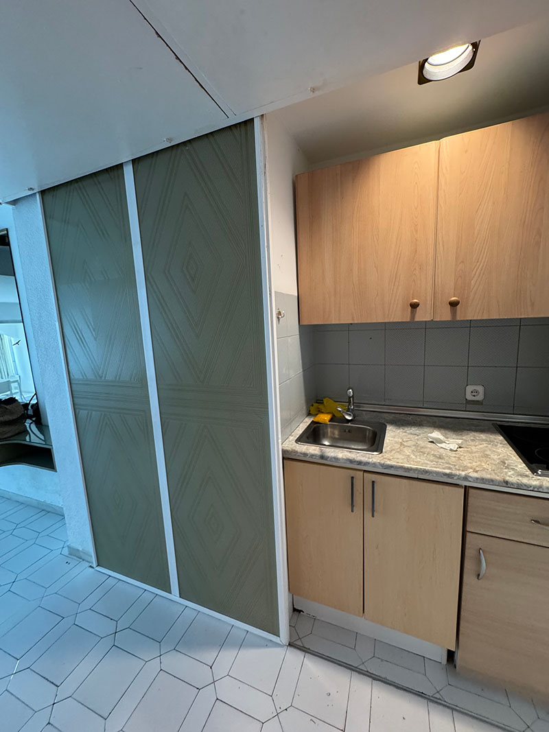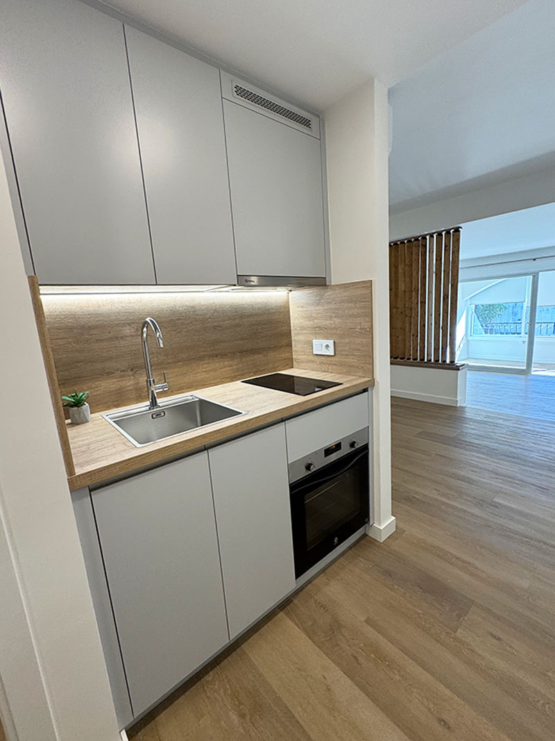 The intervention consisted of a comprehensive renovation that redefined the space from its core. The kitchen was expanded into a more open and functional area, adapted for family life and daily use. The bathroom was completely renovated, improving its layout, finishes, and technical installations.