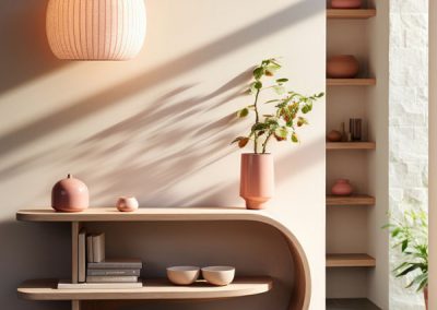 We work with natural materials—wood, stone, fibers, and organic textures—because they bring authenticity, warmth, and a beauty that ages gracefully over time.