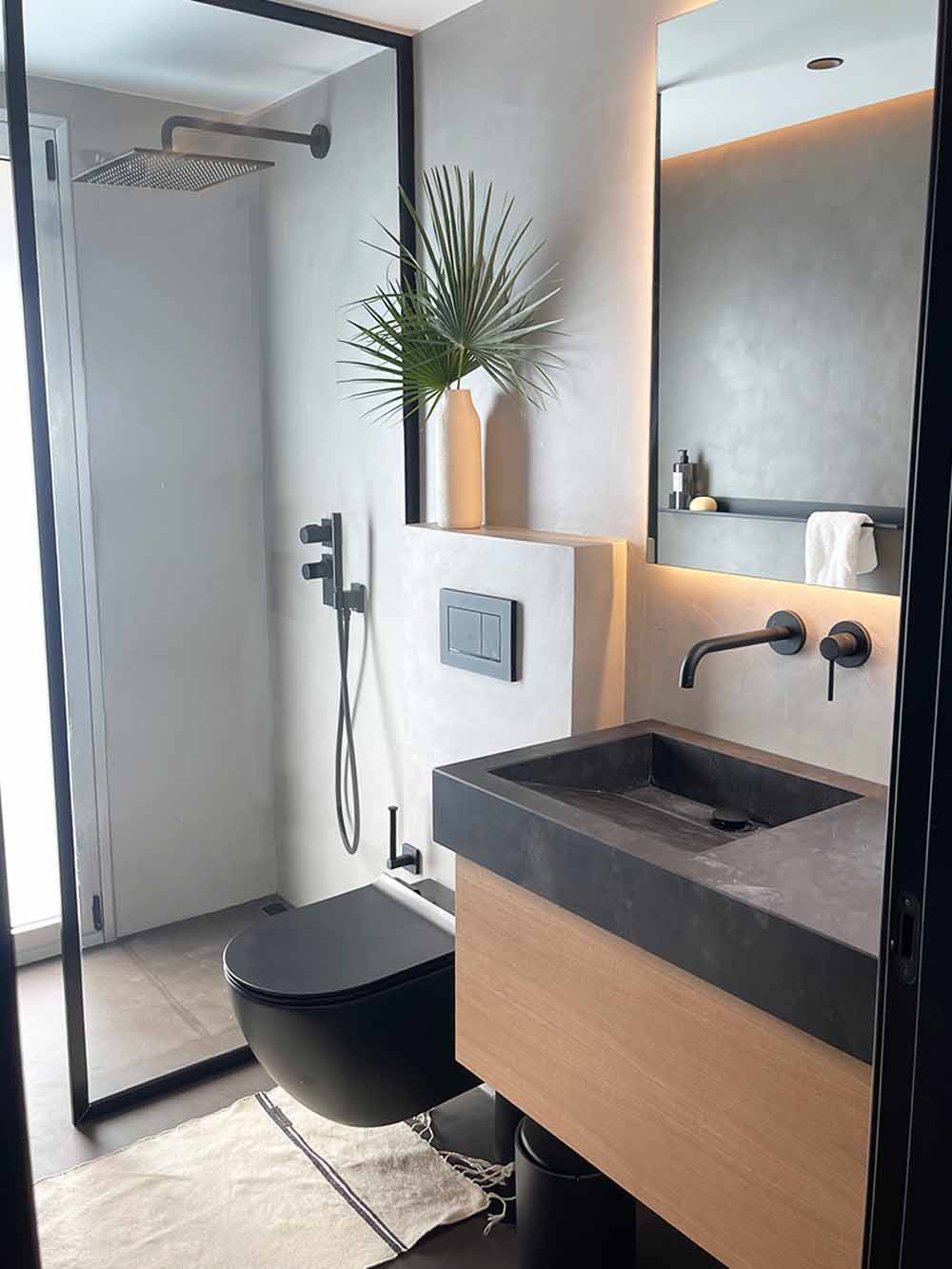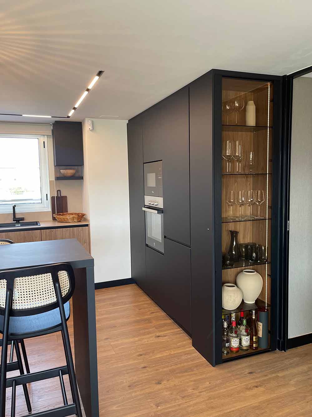 En este proyecto buscábamos una estética sobria y contemporánea, donde el color negro se convirtiera en el protagonista sutil del espacio. Este color, asociado tradicionalmente al lujo y la exclusividad, en acabado mate aporta modernidad, profundidad y una sofisticación atemporal,